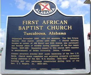 In 1845, seventy-one (71) White people and 65 Negroes attended the First Baptist Church, Tuscaloosa. The record shows and a study indicated that Negroes continued to attend in large numbers after the Civil War.